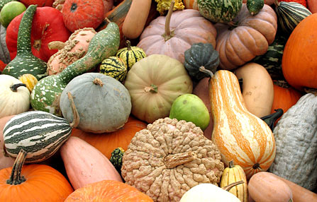 There are too many squash varietals to even begin naming them!  And, now is the time (roughly Late Summer) when the first of the winter squashes start rolling in from the fields.  We’ve got some interesting shaped and colored fellas in our kitchen — one kind of looks like a submarine.