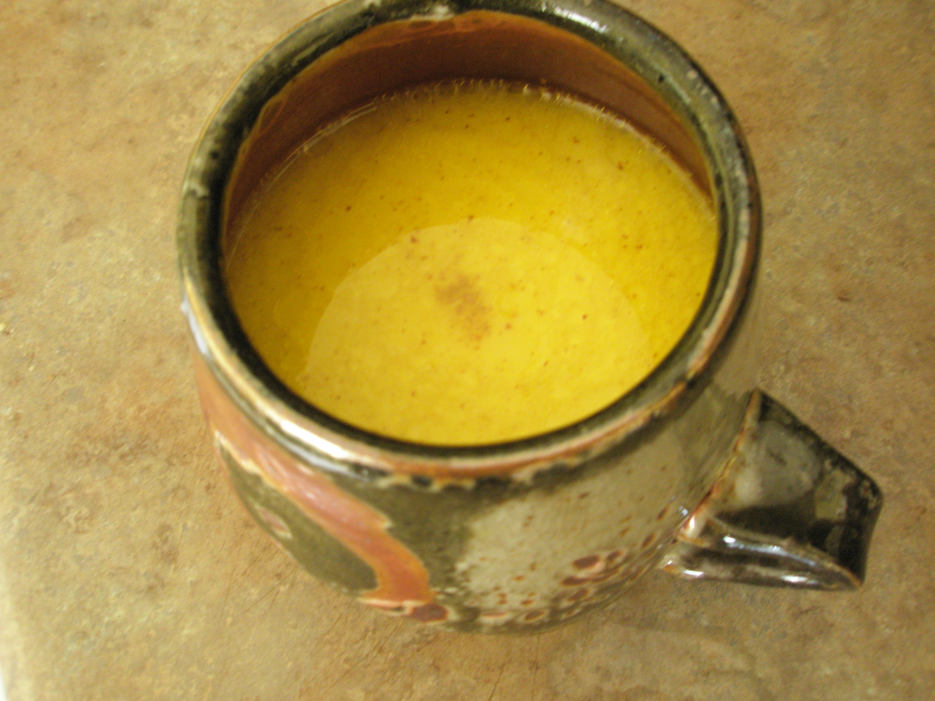 I strained out the spices and added turmeric powder, a scoop of ghee, and honey to taste.
