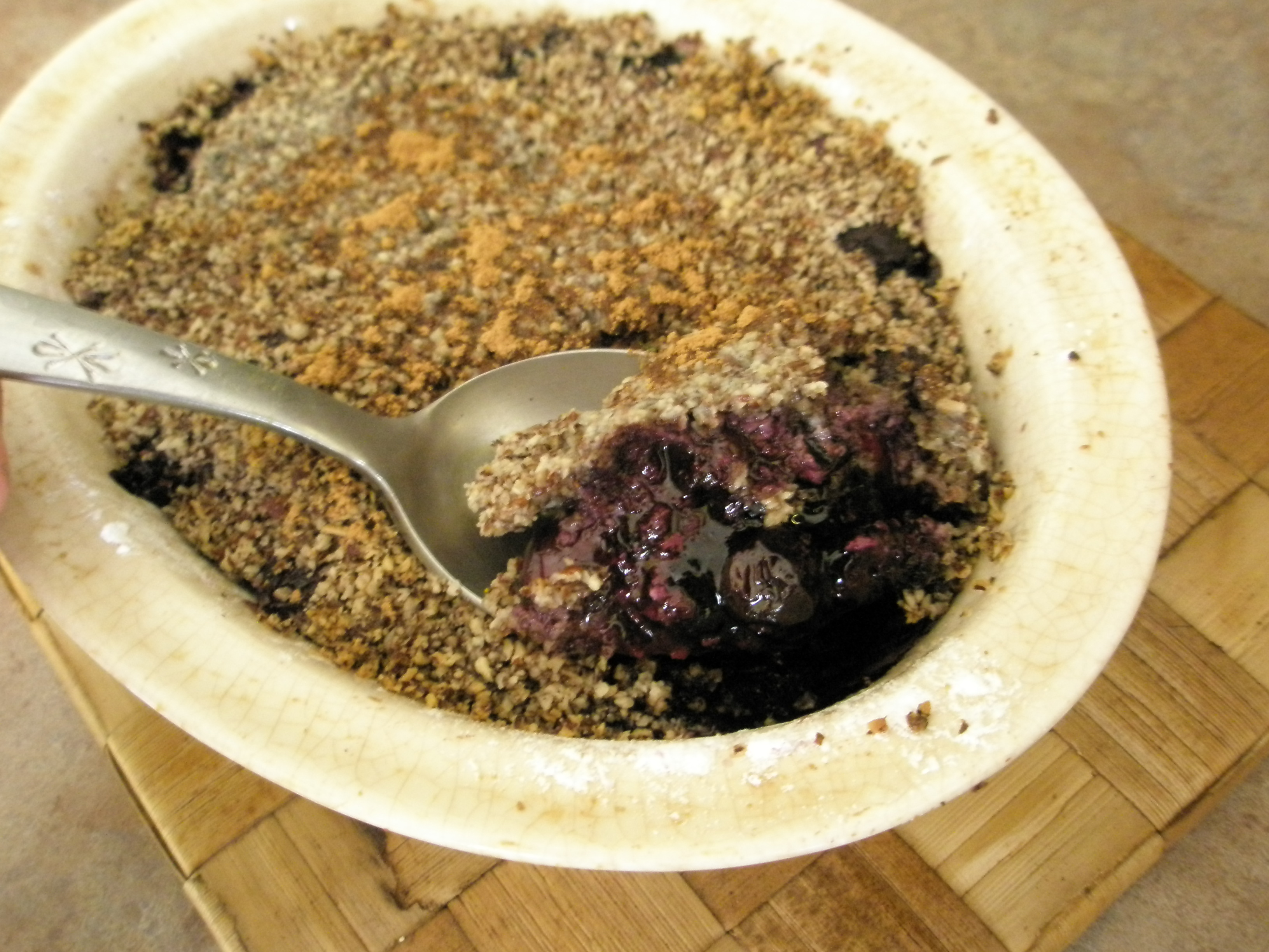 Easy paleo fruit cobbler (this one with blueberries frozen from June’s harvest)