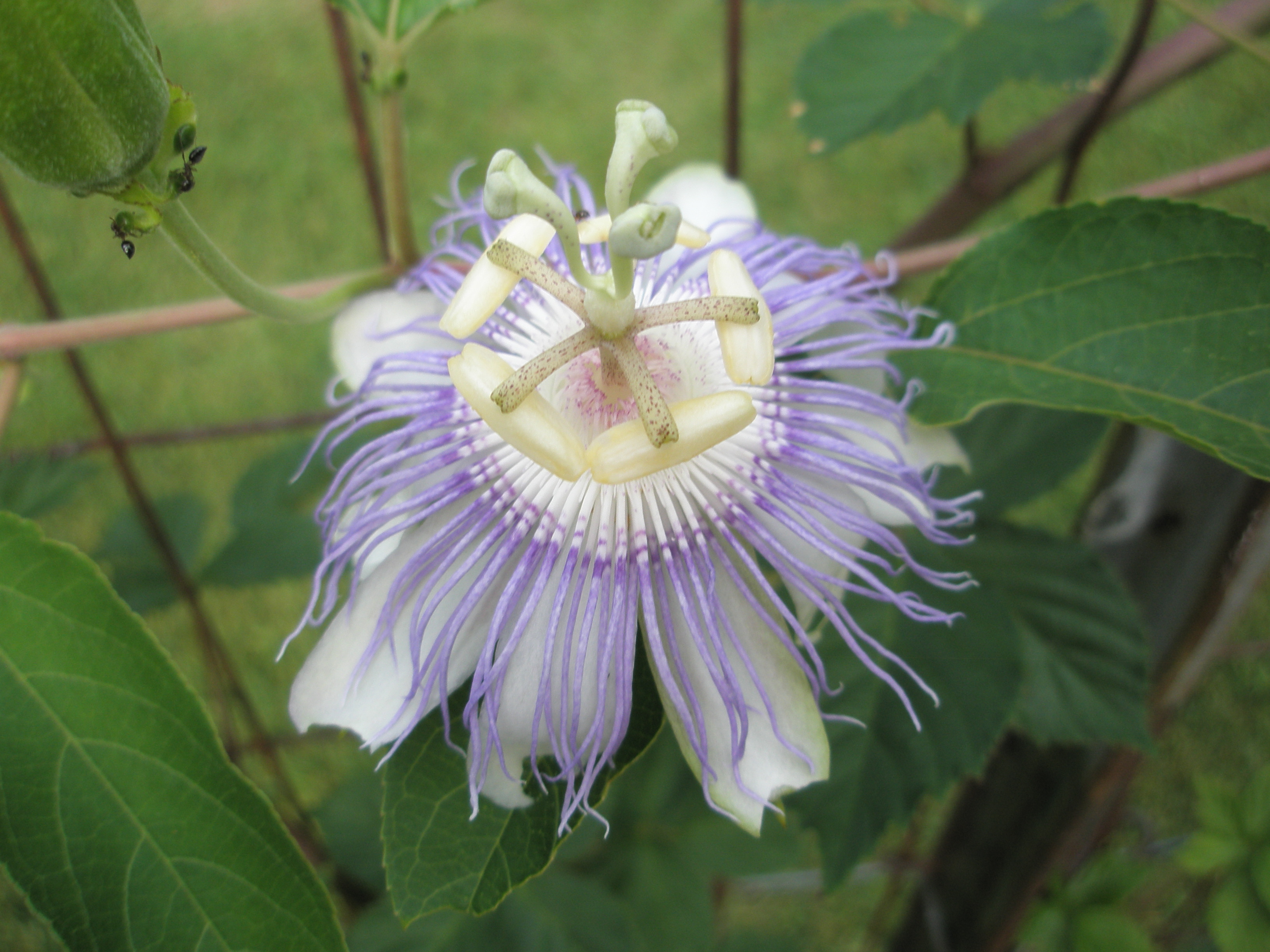 The passionflower vine also has extrafloral nectaries, or small bulbous nodes the produce a sugary nectar at the base of each leaf to attract ants for protection. These ants will do anything from girdling competing plants from crowding the vine to attacking harmful pests and insects. Herbalist Juliet Blankespoor writes other juicy details about passionflower and ant mutualism (oh, and so much more) in her blog post here.