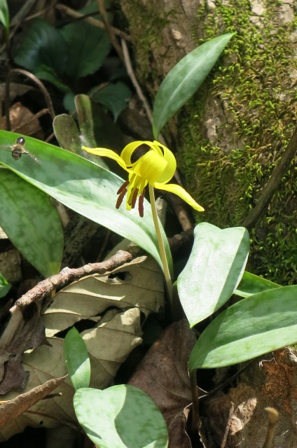 IMG_2851 Published at 424 × 640 in Motherhood and the New Ring on My Tree « Previous Next » Trout lily with a native bee photo bomb