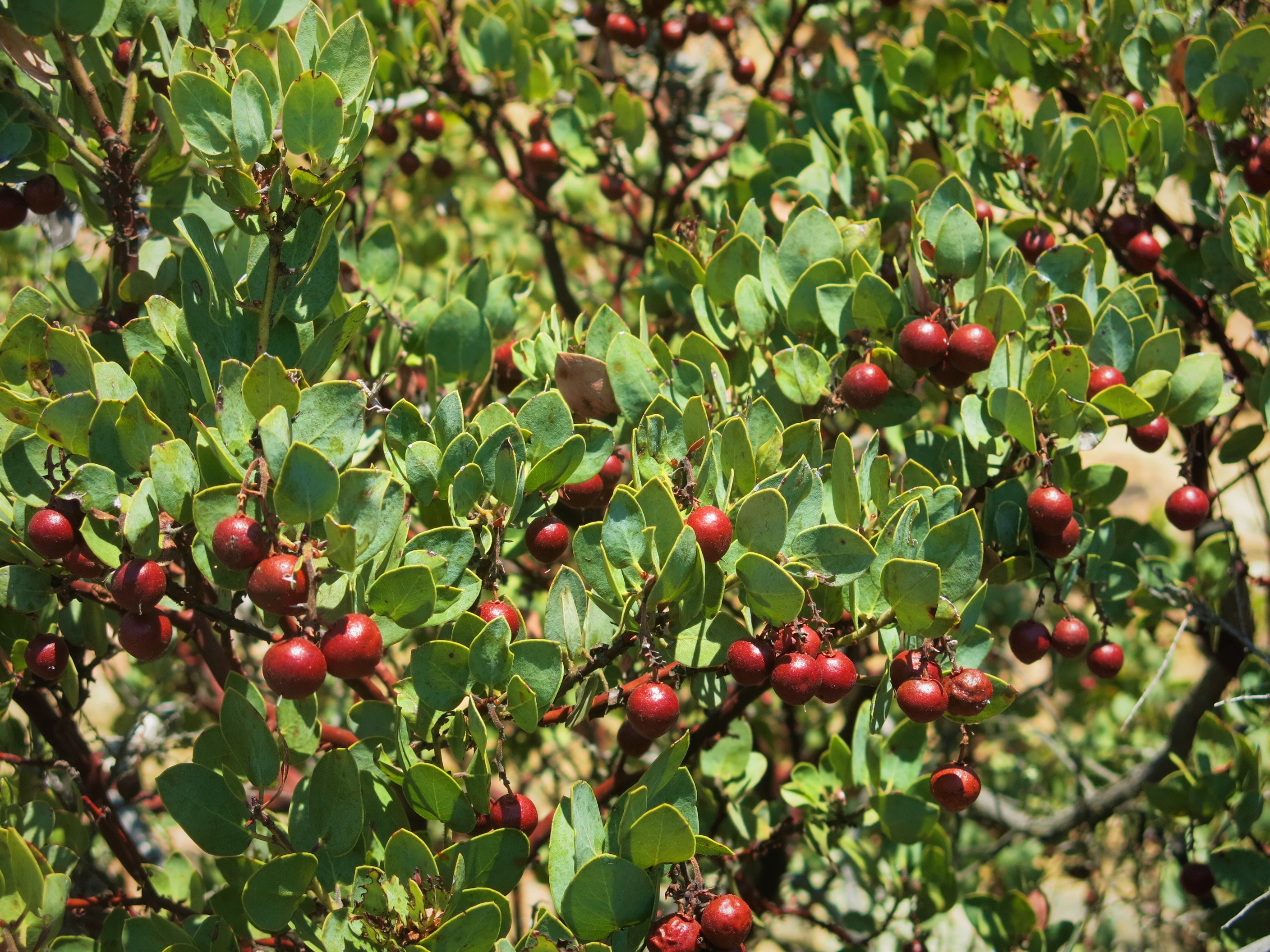 A recent exploration of mine has been big-berry manzanita (Arctostaphylos glauca) which is quite different than the species I was familiar with in the areas I hiked surrounding the Bay Area. Just so you know, manzanita is in the Ericaceae family, the same as blueberry.