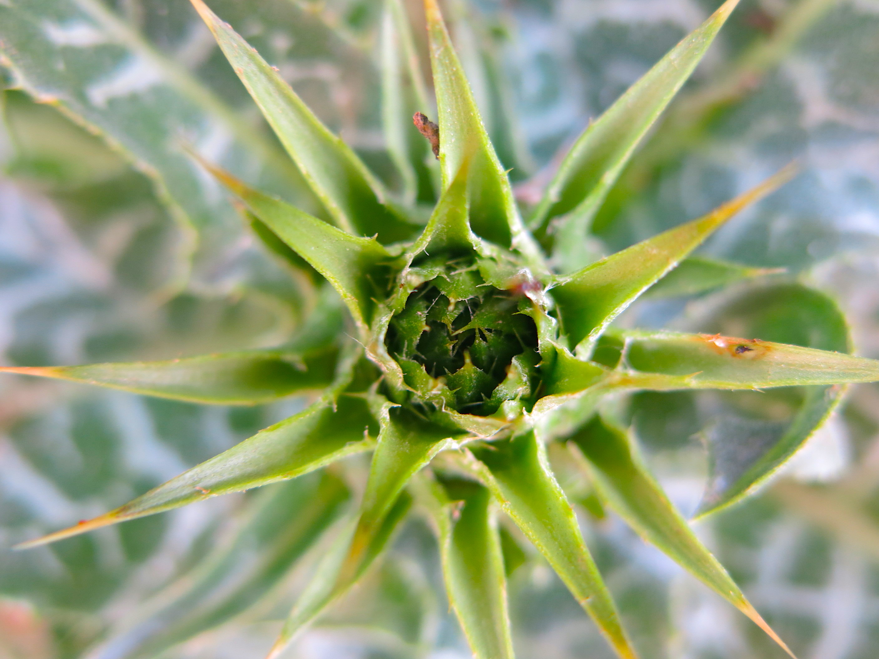 (Milk thistle abundantly growing near the trail; the white veins are typically more intense when the plant is not in direct sunlight…)