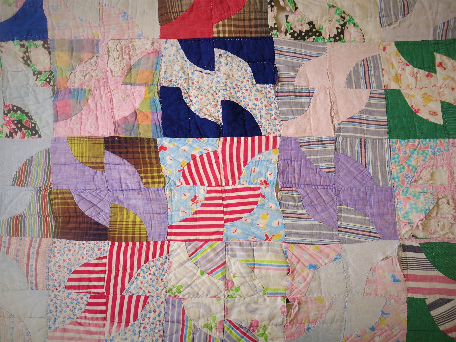 My great grandma Ora (born in the year 1900), of the red clay hills in Mississippi, was an impeccable seamstress and skilled in hand-sewing quilts. As far as I know, she never used a sewing machine or, at least, she never did on her quilts.